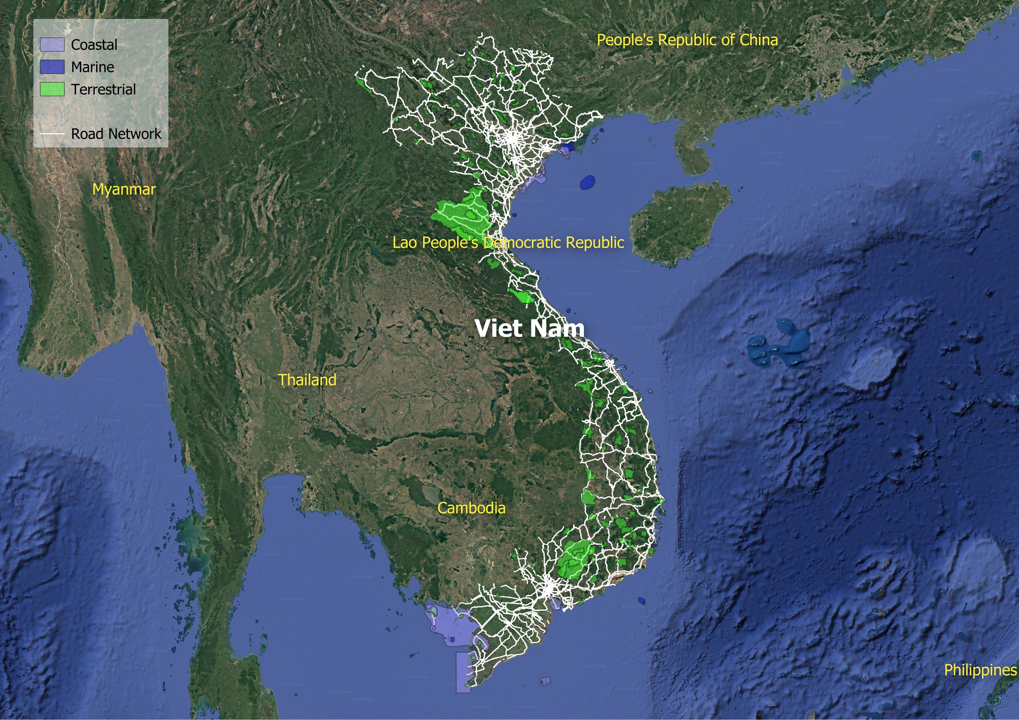 Construction itself carries a heavy environmental price tag. The material stock in road infrastructure amounts to approximately 2,384.9 million tonnes. Maintaining and expanding this network requires an additional 49.4 million tonnes of material annually, equivalent to 1.9 million tonnes of CO2e. This expansion also encroaches on ecological integrity; research indicates that among Viet Nam's 111 Key Biodiversity Areas (KBAs), 66 contain road infrastructure, equating to a density of 65 meters of road per thousand square kilometers within these sensitive zones.